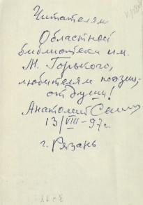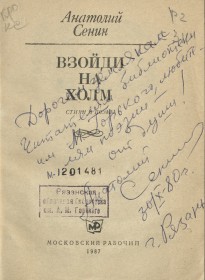 В «Коллекции автографов» Рязанской библиотеки им. Горького хранятся книги А. Сенина с автографами автора. Познакомиться с дарственными надписями на книгах можно на скан-изображениях.