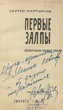 - Мартьянов С. Н. Первые залпы : документальная повесть / С. Мартьянов. – Алма-Ата : Жазушы, 1966. – 180 с. : ил.