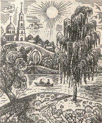 Мастер скрупулезно изображает пейзажную панораму окрестностей села Константинова. Но странное дело: чем больше художник детализировал, тщательно прорисовывал гравюры, тем они становились ярче, светлее, насыщаясь воздухом романтики, теплотой человеческого обаяния, высоким слогом есенинской поэзии. Лирический дар гравера находил опору в поэтическом чувстве Есенина и, достигая созвучия с ним, усиливал эмоциональное воздействие станковых иллюстраций.