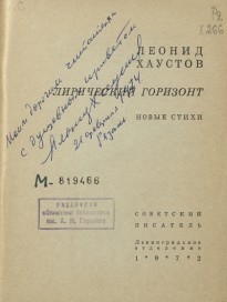 В «Коллекции автографов» библиотеки им. Горького хранятся четыре поэтических сборника Леонида Хаустова с автографами автора. Увидеть дарственные надписи на книгах можно на сканированных изображениях.