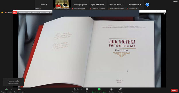 Сотрудник центра редких и ценных изданий Оксана Агапкина рассказала о пятилетней работе Рязанской областной универсальной научной библиотеки имени Горького над проектом по созданию крупного сводного каталога «Библиотека Головниных», объединившего 29 фондодержателей со всей России.