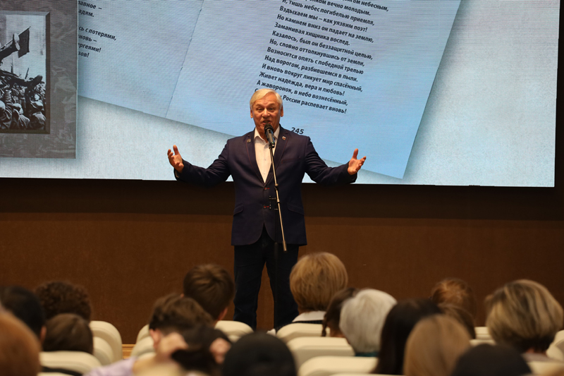 Ректор Рязанского государственного университета имени С.А. Есенина, председатель рязанского регионального отделения Российского исторического общества, председатель рязанского регионального отделения Российского общества «Знание» Дмитрий Александрович Боков говорил о важности знакомства молодежи с творчеством Бориса Жаворонкова и призвал юных гостей встречи читать его стихи, пронизанные патриотизмом и безграничной любовью к Родине.