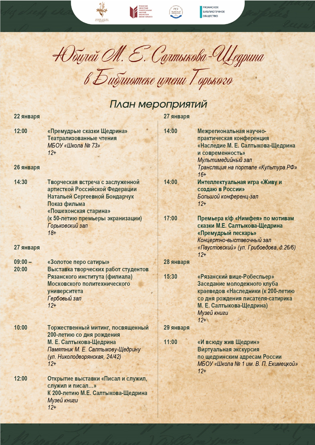 Юбилейные мероприятия в Библиотеке имени Горького к 200 летию со дня рождения М.Е. Салыткова-Щедрина