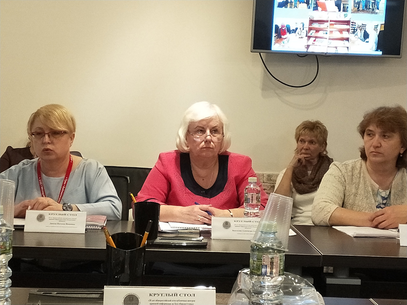 На заседании круглого стола прозвучало сообщение тульских, самарских, новосибирских коллег о смысле деятельности и основных направлениях отделов правовой информации, имеющихся в их библиотеках. Мы рассказали о своем опыте, о реализации информационно-просветительских проектов, поддержанных фондом М. Прохорова, об организации площадки по оказанию бесплатной юридической помощи в партнерстве с общественными и государственными структурами.