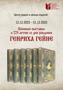 С 12 декабря по 31 декабря в читальном зале Центра редких и ценных изданий работает книжная выставка, посвященная 225-летию со дня рождения Генриха Гейне.