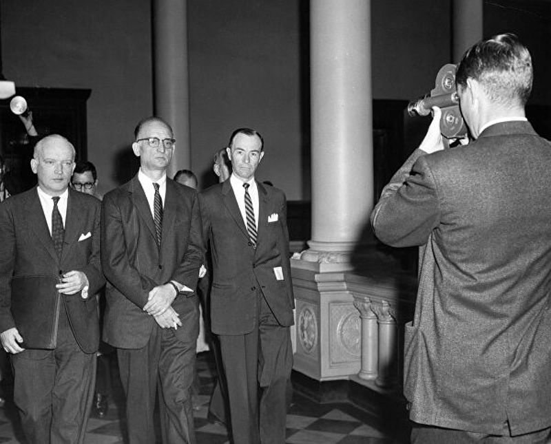 Машина направляется к мосту Глиникер, соединяющему берега озера Ванзее. Ровно посредине моста встречаются два советских дипломата и два американских. Визирование документов, подтверждающих процедуру обмена, занимает около получаса. Эти тридцать минут ожидания были полны драматизма и напряжения. Хватило бы искры, чтобы операция в буквальном смысле взорвалась; в случае неожиданного поворота событий никто из находившихся на мосту, не ушел бы живым.