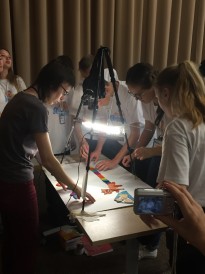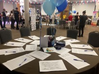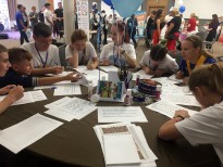 Свою лепту внесли в проведение фестивальных мероприятий и сотрудники библиотеки, подготовившие мастер-класс «Каллиграфический старт». Ребята получили первоначальные знания о каллиграфии, отточили свое умение в искусстве красивого письма, а затем оформили поздравительные открытки для друзей и близких людей. На другой площадке фестиваля состоялся мастер-класс по бумагопластике «Загадки школьного портфеля». Его участники смастерили своими руками тематическую упаковку для подарка в виде школьного рюкзачка, а также небольшую записную книжечку. Ребята творчески подошли к процессу и постарались внести в оформление поделок свою изюминку.