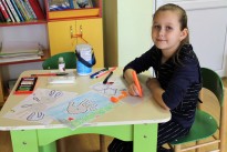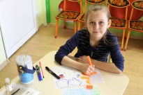 На мастер-классе в «Сказочном домике» мы на детские ладошки наносим кисточкой растительное масло. Занятие оказалось увлекательным и забавным, а еще очень смешным. Было так щекотно, что хотелось побыстрее сжать их в кулачок. Но дети – настоящие художники, поэтому готовы потерпеть ради искусства.