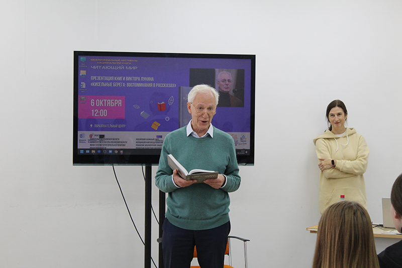 Сегодня в гостях у библиотеки были главный редактор детского издательства «Тримаг» Юлия Астапенко и русский детский поэт, писатель и переводчик Виктор Лунин. Они представляли новую книгу автора «Кисельные берега: воспоминания в рассказах».