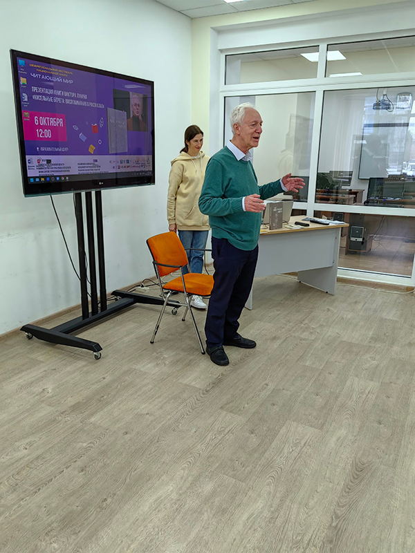 На встрече Виктор Владимирович зачитывал небольшие отрывки из книги, иллюстрируя свое выступление, декламировал стихи, рассказывал интересные случаи из своей насыщенной творческой биографии.