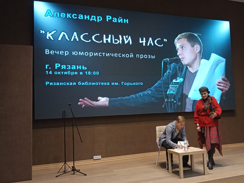 Сегодня в Горьковском зале библиотеки состоялся вечер юмористической прозы Александра Райна – писателя и блогера, автора одиннадцати изданных книг, сборников юмористических рассказов и романов в жанрах мистики, фэнтези и фантастики.