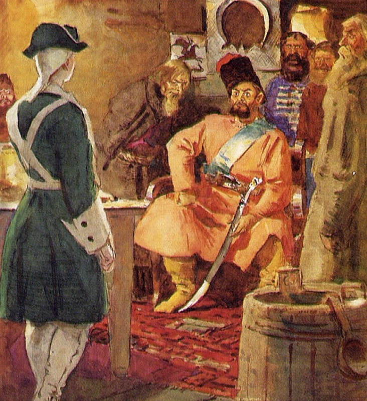 Этот небольшой роман, близкий по объему к повести, знакомит нас с крестьянскими волнениями, предвещавшими близость восстания, с грозным обликом предводителя восстания – Емельяна Пугачева и с его первыми военными успехами. Кроме того, в романе отражена жизнь различных слоев русского общества второй половины XVIII в.: патриархальный быт дворянского поместья Гриневых, скромная жизнь семьи коменданта Белогорской крепости капитана Миронова и т. д.