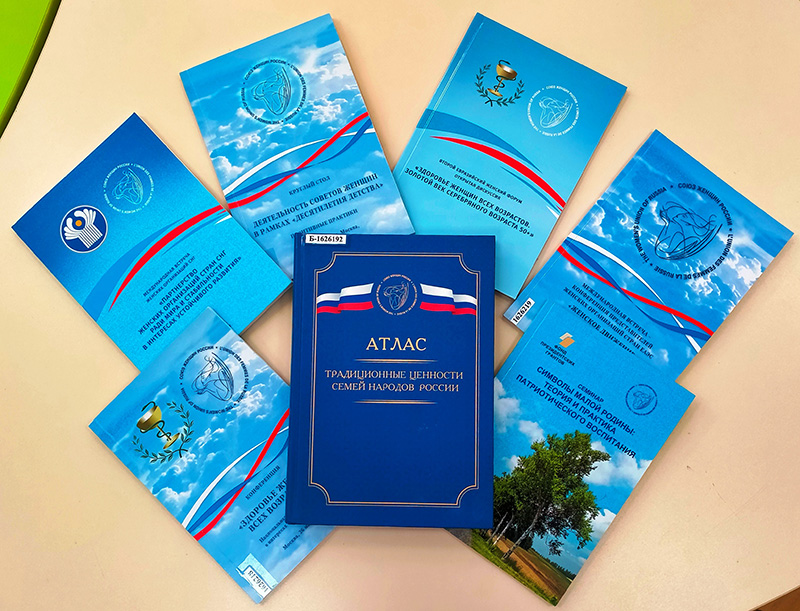 Атлас «Традиционные ценности семей народов России» издан в 2023 году при активном содействии Общероссийской общественно-государственной организации «Союза женщин России». В статьях атласа в упорядоченном виде раскрываются особенности развития исторических, этнографических, нравственных ценностей и быта семей нашей страны. В справочном издании содержатся материалы, предоставленные субъектами Российской Федерации, – книга иллюстрирована фотографиями из региональных музеев и современными авторскими фотоработами.