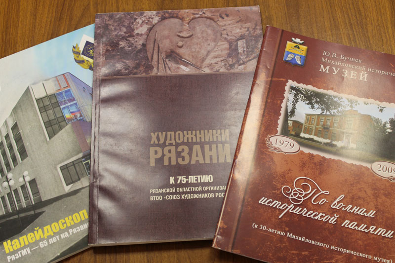 В их числе издание «Святитель Феофан и книги», подготовленное Рязанской областной унивресальной научной библиотекой имени Горького, Рязанской епархиальной библиотекой и Свято-Успенским Вышенским монастырем, последний выпуск «Вестник Геральдического совета при губернаторе Рязанской области», «Календарь знаменательных и памятных дат на 2016 год», сборник научных трудов, изданный к 100-летию Рязанского государственного университета, и двухтомник «Роль десантных войск в укреплении обороноспособности страны».
