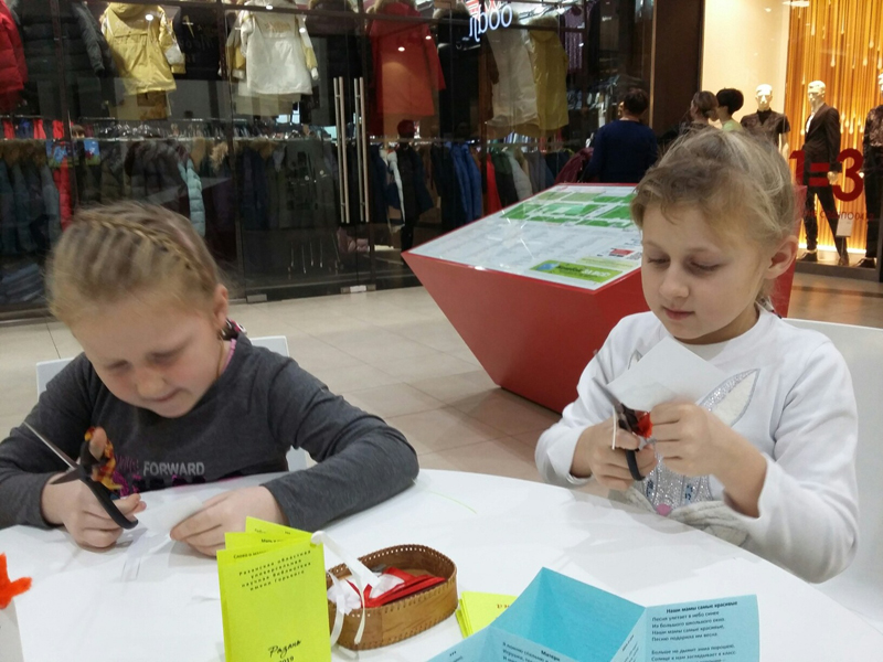 Изготовление книжки из бумаги — простое и увлекательное занятие. Книжка может послужить дневником, блокнотом для рисования или же милым самодельным подарком. Дети с удовольствием мастерили книги из одного листа бумаги, используя в работе основные принципы древнего искусства оригами. Многие участники пообещали каждую субботу приезжать в торговый центр, чтобы поучаствовать в библиотечных мастер-классах.