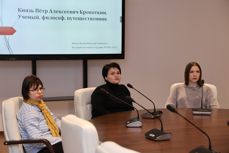 В библиотеке имени Горького в рамках мероприятий, приуроченных к памятной дате, состоялась лекция ведущего научного сотрудника библиотеки Николая Семеновича Попова «Князь Пётр Алексеевич Кропоткин. Ученый, философ, путешественник». Гостями встречи стали студенты Института истории, философии и политических наук Рязанского государственного университета имени С.А. Есенина.