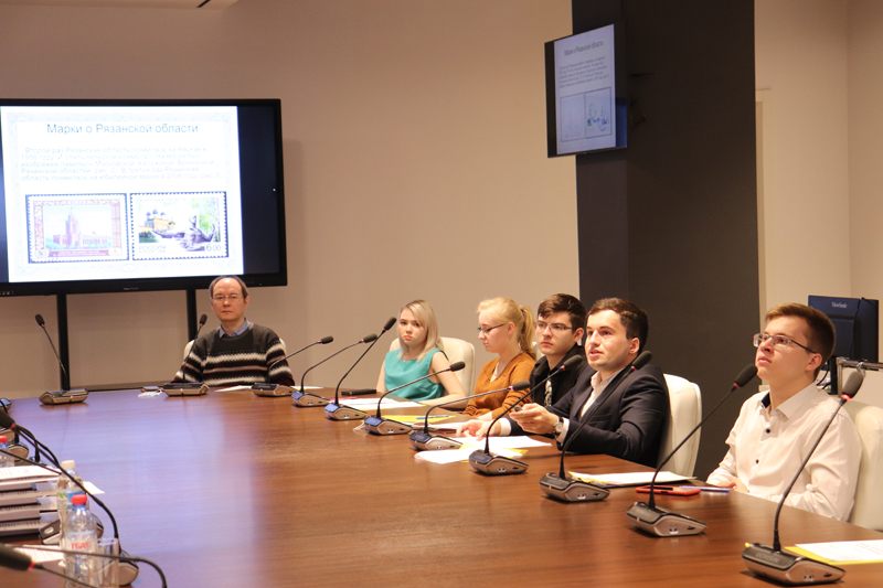 С большим интересом участники конференции слушали доклад студента РГУ имени С. А. Есенина Алексея Туарменского «Рязанская область, Рязань и рязанцы на почтовых марках СССР и России».