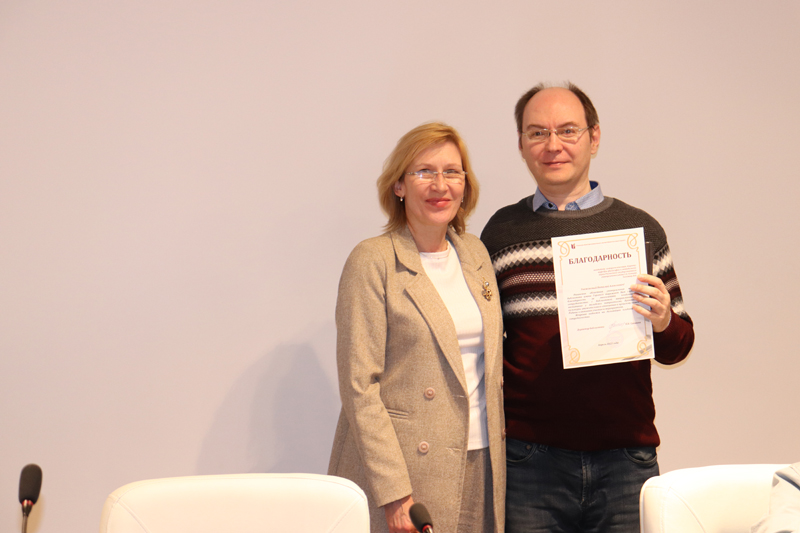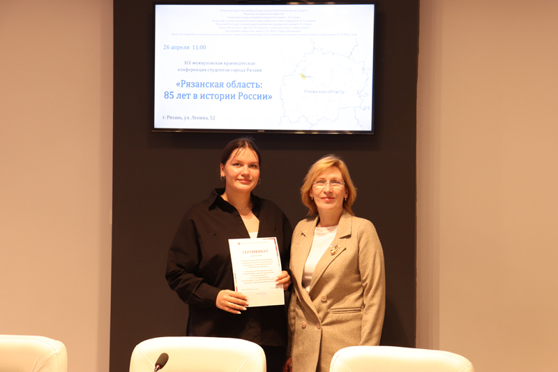 В завершение конференции заместитель директора РОУНБ имени Горького Светлана Алексеевна Винокурова вручила благодарности студентам и их научным руководителям - доктору исторических наук, профессору РГРТУ им. В. Ф. Уткина А. С. Соколову, доктору исторических наук, профессору РГУ имени С.А. Есенина и заведующему кафедрой философии и истории РязГМУ им. И. П. Павлова П. В. Акульшину, кандидату исторических наук, доценту РГУ имени С.А. Есенина В. А. Толстову, кандидату исторических наук, доценту Рязанского института (филиала) Московского политехнического университета Н. С. Брязгуновой и кандидату педагогических наук, доценту Академии права и управления ФСИН России В. В. Туарменскому.