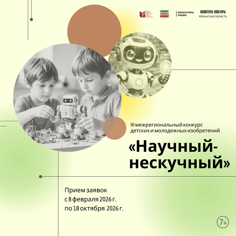 Друзья, библиотека имени Горького и волонтеры науки Рязанской области объявляют о старте III межрегионального конкурса детских и молодежных изобретений «Научный – нескучный».