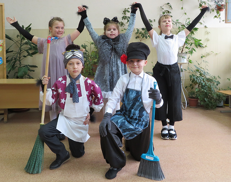 С большим удовольствием детвора рассматривала иллюстрации художника-сказочника Юрия Васнецова к книге, обзор по которой провела сотрудник кафедры детской литературы. Яркой, наполненной импровизациями, получилась сценка из мини-спектакля, подготовленного учащимися. Герои сказки оживали благодаря старательной и проникновенной игре маленьких актеров. Костюмы гармонично сочетались с образами, подчеркивая индивидуальность каждого персонажа. Достойную оценку всех учащихся и преподавателей получил танец «Кошачье ча-ча-ча» и декоративные панно, изготовленные по сюжету сказки. Яркие поделкии видеофрагмент «Кошка встречает гостей» из советского мультфильма по мотивам сказки Маршака подняли настроение всем участникам программы.