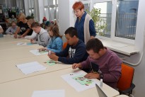 Сотрудники универсального читального зала провели для ребят программу и мастер-класс «Краски осени». Воспитанники познакомились с яркой и красочной порой листопада, узнали, какой урожай можно собрать осенью, какие птицы улетают на юг, а еще совершили путешествие в лес за грибами, посмотрели мультфильм. В завершение встречи ребята смастерили грибные открытки на память.