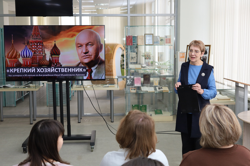 Сегодня в библиотеке имени Горького прошел час истории и открытие выставки «Крепкий хозяйственник», посвященные 90-летию со дня рождения второго мэра Москвы (с 1992 по 2010 гг.), политика, общественного деятеля, мыслителя и благотворителя Юрия Михайловича Лужкова.