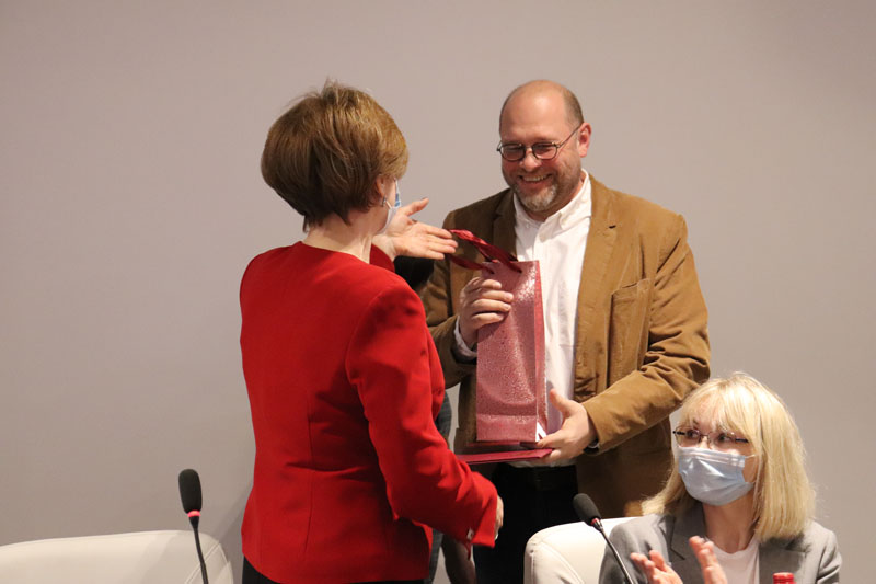 Главный библиотекарь отдела формирования фондов Наталия Борисовна Жилякова выступила с информацией о включении Российской книжной палаты в структуру Российской государственной библиотеки, а также с анализом поступлений обязательных экземпляров документов в Библиотеку им. Горького и в Российскую книжную палату в 2020 году.