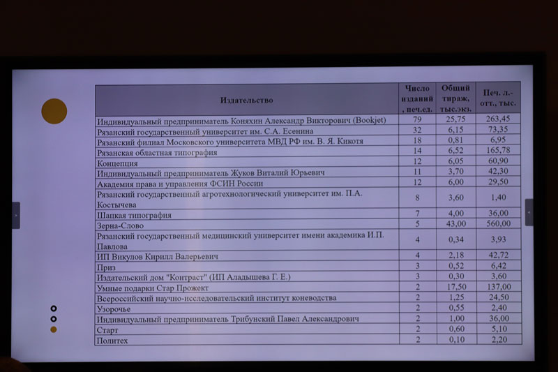 Ольга Алексеевна Назарова, начальник отдела взаимодействия со СМИ министерства по делам территорий и информационной политике Рязанской области, отметила важную роль книг в современной жизни, вне зависимости от того, печатная это книга или электронное издание, напомнила, что библиотеки и издательства вместе формируют любовь к чтению, пожелала издателям новых успешных проектов.