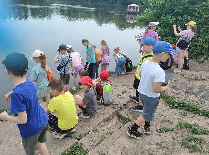 Дети познакомились с историей парка, прогулялись по его зеленым аллеям, послушали пение птиц, покормили уток в Рюминском пруду и сфотографировались у реликтовых дубов. В ходе пешеходной экскурсии школьники услышали историю рода рязанских меценатов Рюминых, которые занимались благотворительностью, узнали о несохранившейся усадьбе Рюминых, где останавливались российские императоры, об истории происхождения местного пруда, который сейчас является излюбленным местом отдыха горожан.