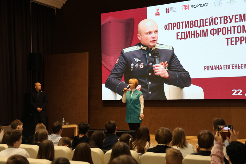 Роман Евгеньевич подробно рассказал школьникам, пришедшим на мероприятие, о современных методах борьбы с терроризмом, важности сотрудничества различных социальных институтов и роли каждого гражданина в обеспечении личной и общественной безопасности. Слушатели активно задавали вопросы и делились своими мыслями, что создало атмосферу живого диалога. Лекция сопровождалась информативной презентацией.