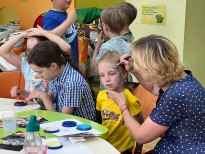 Далее ребят ждали активные игры и увлекательные занятия. На мастер-классе по аквагриму каждый смог почувствовать себя настоящим гримером и примерить на себя образ любимого персонажа. А на мастер-классе по валянию из шерсти дети научились работать в технике сухого валяния и сделали оригинальные поделки своими руками.