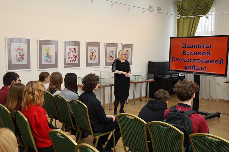 В год 80-летия победы нашего народа над фашисткой Германией сотрудники Центра литературы по искусству познакомили учеников 9 класса 14 школы г. Рязани с работами советских художников, созданных во время Великой Отечественной войны.