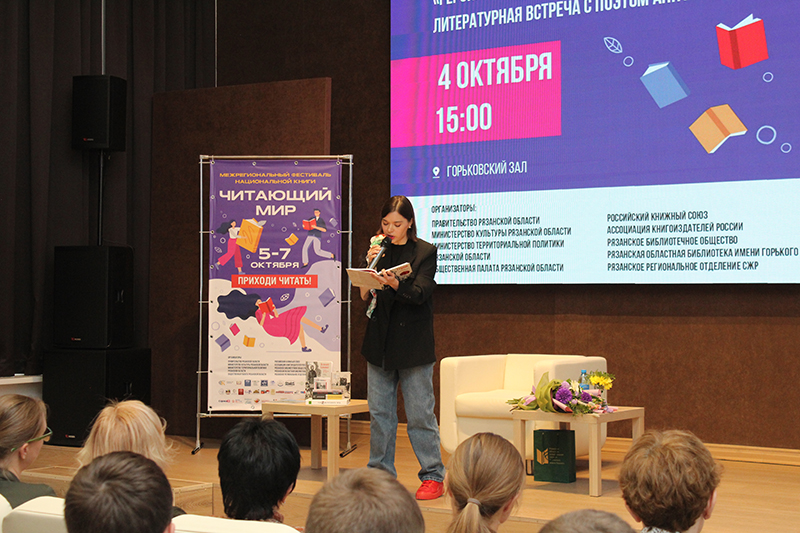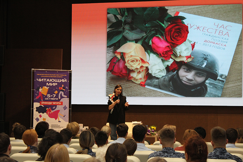 Прологом к Межрегиональному фестивалю национальной книги «Читающий мир» стала литературная встреча с поэтом Анной Ревякиной, членом Союза писателей Донецкой Народной Республики и Союза писателей России. Мероприятие стало одним из главных событий фестиваля и объединило неравнодушных к судьбе России людей.