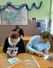 В рязанской школе №10 состоялся мастер-класс по изготовлению новогодней открытки, в организации которого оказали помощь сотрудники кафедры периодических изданий, подготовив электронную презентацию «Из истории праздника», викторину и материалы для открыток.
