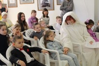 Скучать ребятам в библиотеке не пришлось: сказочные герои – Алиса и Мартовский Кролик - развлекали их играми. Для маленьких гостей был организован мастер-класс по песочной анимации.