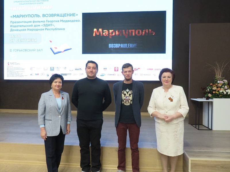 Сегодня в рамках X Межрегионального фестиваля национальной книги «Читающий мир», проводимого при поддержке Президентского фонда культурных инициатив, в библиотеке имени Горького состоялась презентация фильма писателя, режиссера, военного корреспондента информационного агентства News Front Георгия Медведева «Мариуполь. Возвращение».