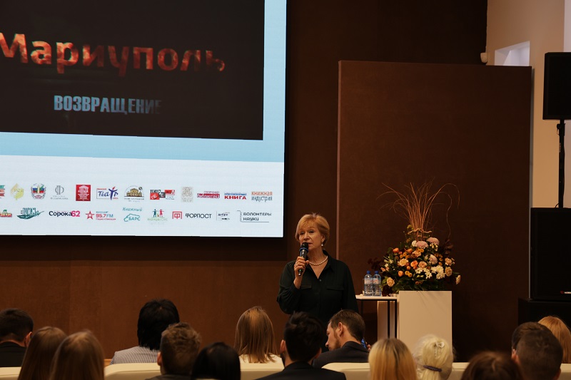 С приветственным словом к участникам презентации обратилась директор Рязанской областной универсальной научной библиотеки имени Горького, председатель Общественной палаты Рязанской области, заслуженный работник культуры Российской Федерации Наталья Николаевна Гришина. Она рассказала, что Мариуполь сегодня является символом мужества и героизма, то, что пережили люди в то время, отозвалось в сердцах всей страны. Наталья Николаевна отметила, что библиотека Горького активно помогает бойцам специальной военной операции.