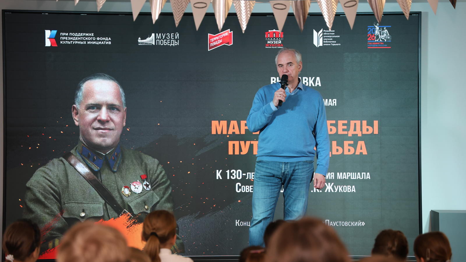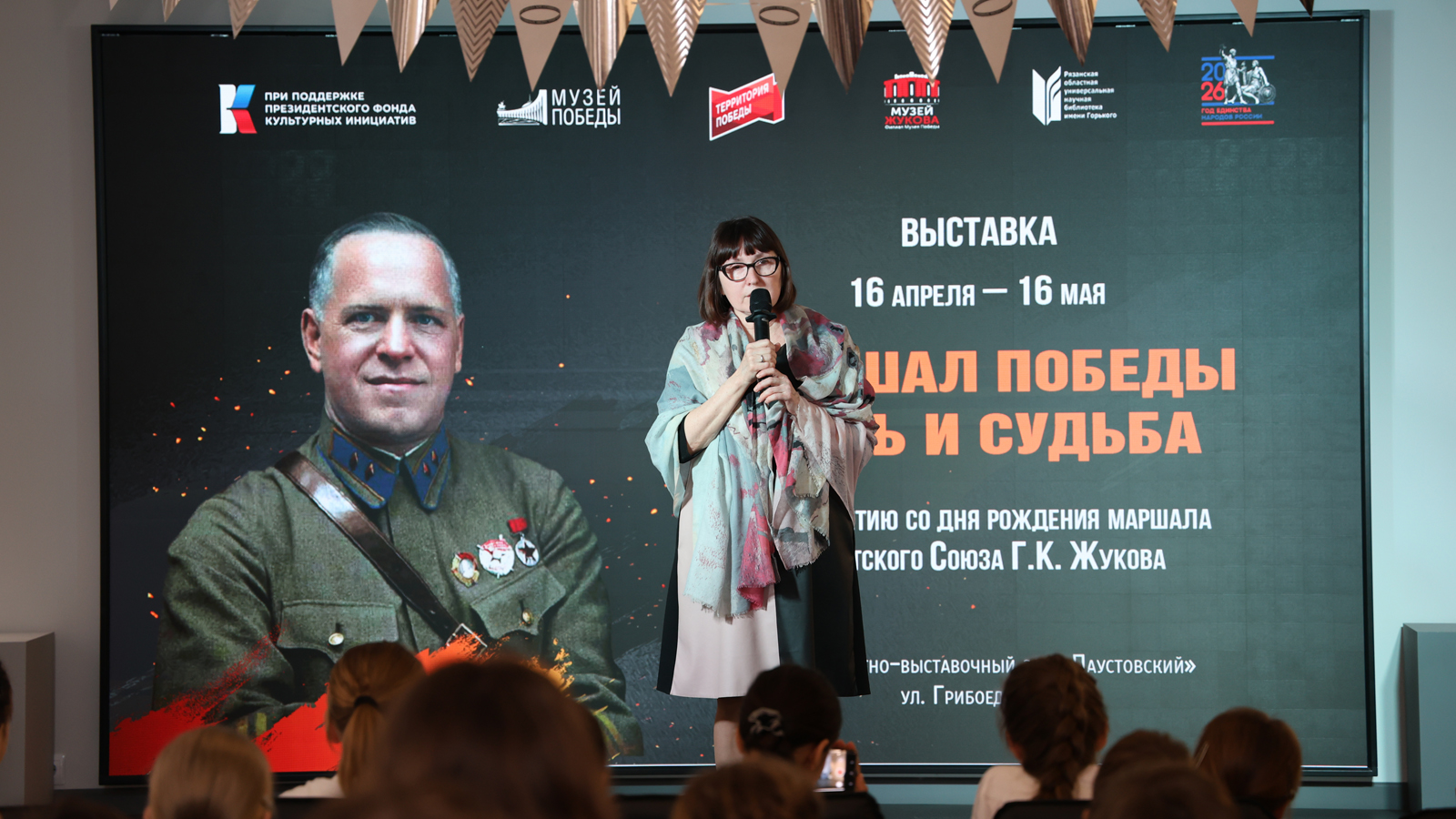 В концертно-выставочном зале «Паустовский» Рязанской областной универсальной научной библиотеки имени Горького состоялось открытие выставного проекта «Маршал Победы. Путь и судьба», посвященного 130-летию со дня рождения легендарного советского полководца, Маршала Советского Союза, четырежды Героя Советского Союза, кавалера двух орденов «Победы» Георгия Константиновича Жукова.