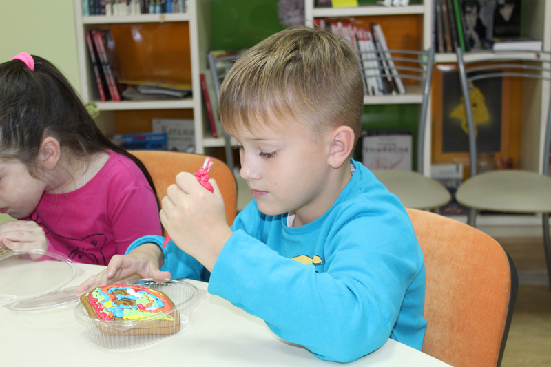 Мальчишки и девчонки совершили путешествие по пряничным традициям городов России и стран мира. Мастер-класс по росписи пряника очень увлек детей, они с огромным удовольствием разрисовывали пряники разноцветной глазурью. Ребята были в восторге от такого интересного и веселого занятия, а расписанные яркие пряники забрали домой.