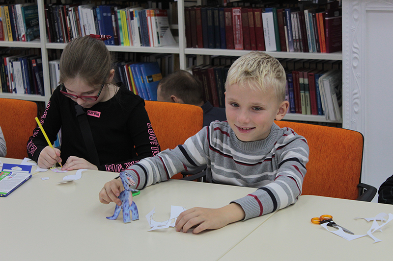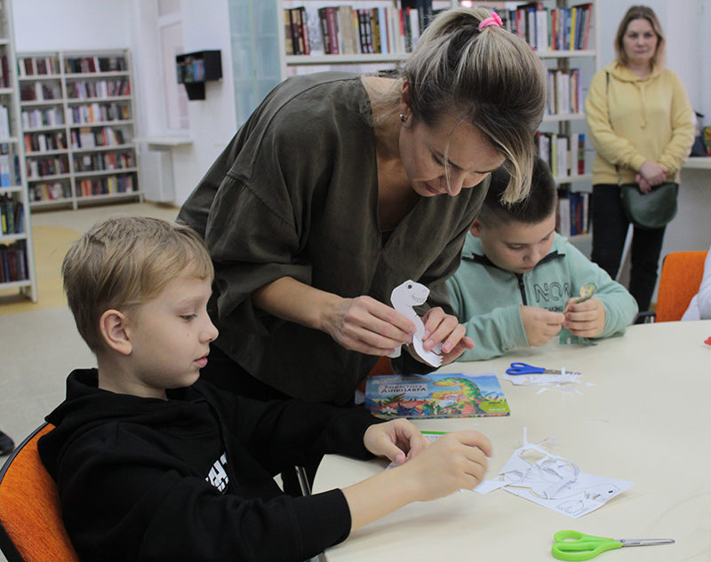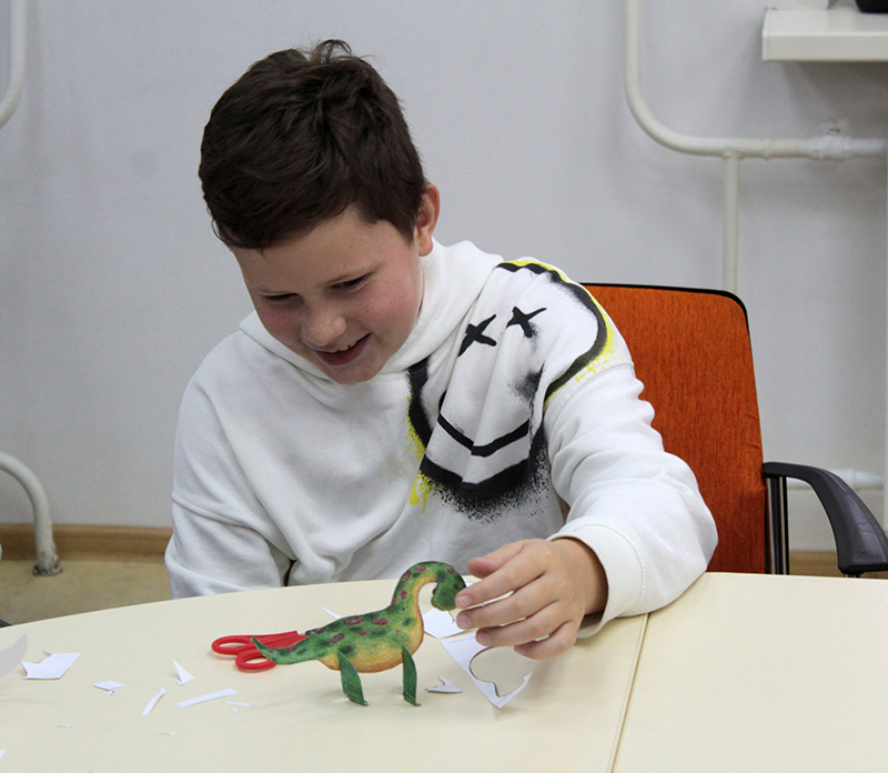 Сотрудники издательства «40 книг» познакомили юных гостей фестиваля со своими интересными книгами, почитали фрагменты и показали красочные иллюстрации. Дети вырезали модели динозавров – героев детских книг и с удовольствием их раскрашивали. Ничто не сравнится с радостью ребенка, который своими руками сотворил что-то удивительное.