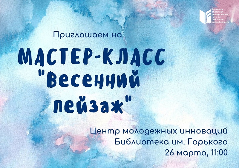 Приглашаем всех желающих принять участие в бесплатном мастер-классе от Библиотеки им. Горького и творческой студии «Шмель». Участники получат возможность нарисовать пейзаж в акварельной технике на весеннюю тему. Занятие проведет преподаватель студии «Шмель», известный рязанский художник, член союза художников Абакумов Сергей Викторович.
