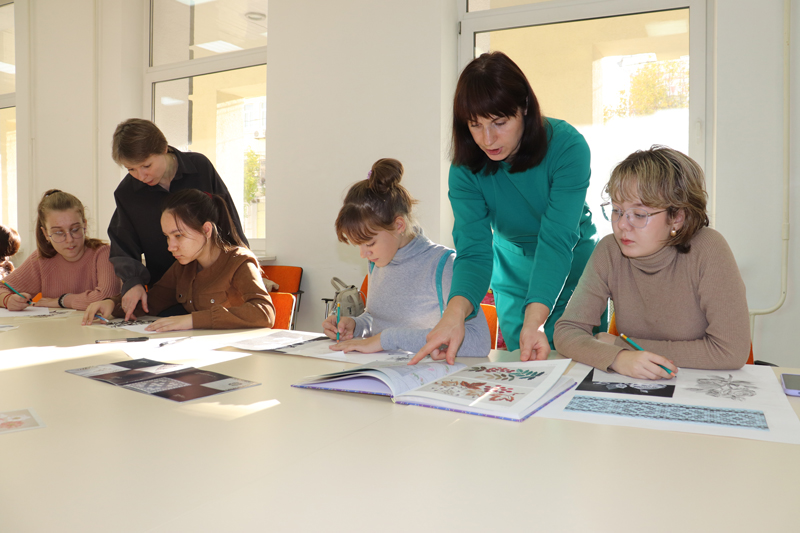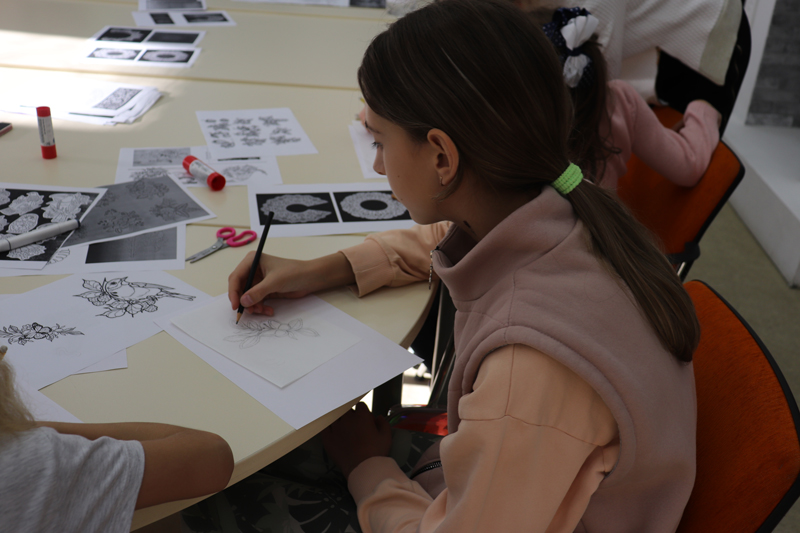 Участниками мастер-класса стали учащиеся художественных детских школ искусств № 1 и № 9 г. Рязани. Ребята познакомились с приемами переработки растительных мотивов в соответствии с видом декоративно-прикладного искусства, создали композицию мотивов с цветами, листьями и плодами, обобщили выбранные элементы, стилизовав орнамент.