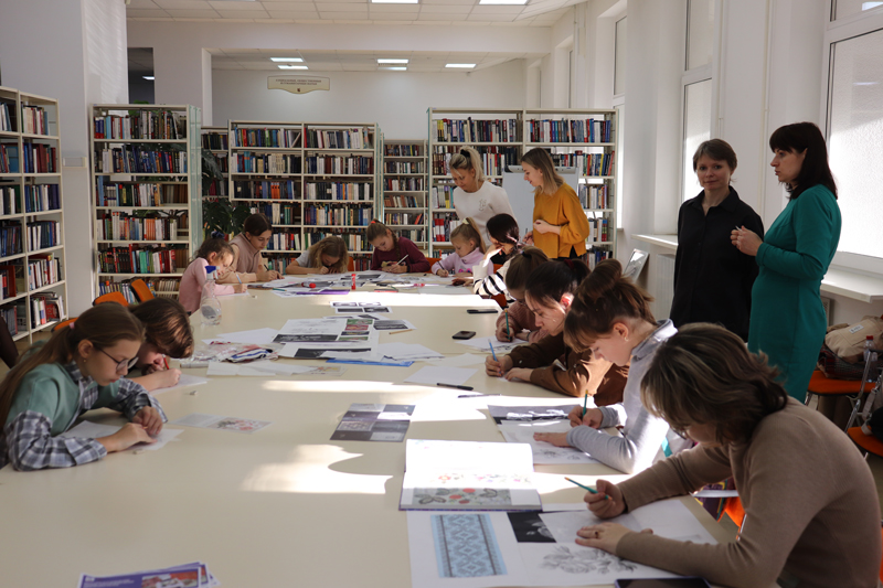 В рамках межрегионального фестиваля национальной книги «Читающий мир» в библиотеке имени Горького состоялся мастер-класс по кружевоплетению и вышивке от преподавателей Рязанского филиала Высшей школы народных искусств Дарьи Юрьевной Христолюбовой и Светланы Юрьевной Анисиной.