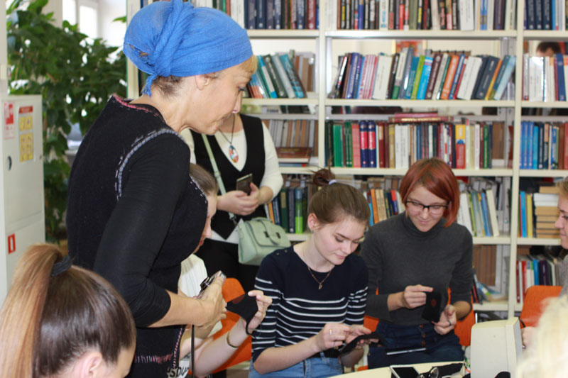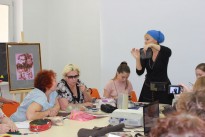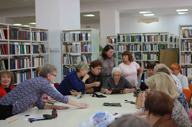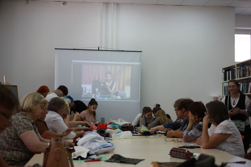 Второй мастер-класс собрал взрослую аудиторию. Тема декорирования драповых тканей особенно актуальна в преддверии наступающих холодов. Татьяна Лазарева поделилась секретами создания бесшовных корсетов, сюртуков и шляпок. Студенты Рязанского технологического колледжа, мастерицы клуба «Волшебный лоскуток», активисты областного Совета женщин, читатели библиотеки узнали много нового и интересного на удивительном мастер-классе под названием «Драповые фантазии». В знак благодарности Татьяне Лазаревой подарили рукодельный сувенир-символ Рязанского края – гриб с глазами.