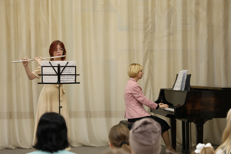 В их прекрасном исполнении прозвучали музыкальные произведения русских, советских и зарубежных композиторов на блокфлейте, фортепиано, скрипке, саксофоне, гитаре, виолончели и баяне.