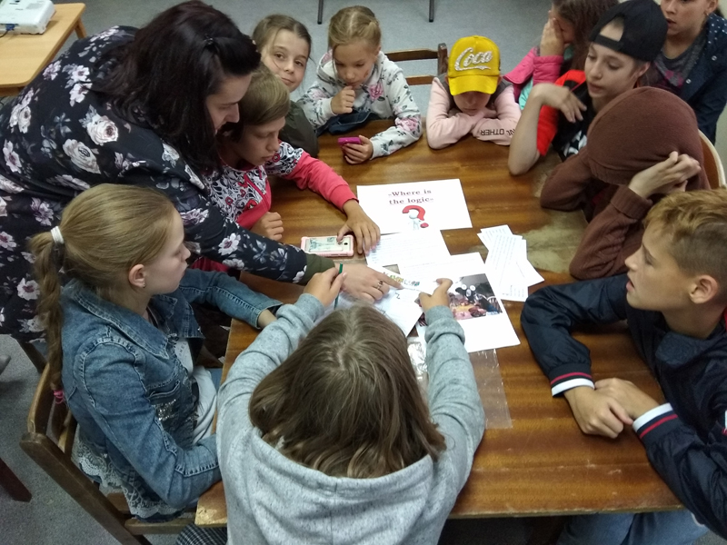 В детский языковой лагерь на базе оздоровительного комплекса «Исток» вновь приехали гости из библиотеки. Сотрудники Центра МИР И Я подготовили для 3 и 4-го отрядов увлекательную интегрированную игру по математике и английскому языку. Команды должны были пройти четыре станции с заданиями: «Занимательная математика», «Где логика?», «Позвони мне, позвони» и «Цифровая цепочка». За каждое верно выполненное задание команда получала золотой дублон, а ошибки приносили ребятам черные метки.