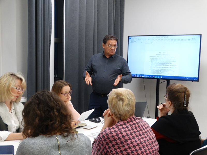 Затем учителя английского языка приняли участие в методическом мастер-классе. Президент ассоциации Виктор Крючков рассказал собравшимся о последних подходах к методическим аспектам обучения чтению, проанализировал типологию заданий и объяснил разницу между контролем и обучением навыкам чтения. В творческой атмосфере педагоги построили матрицу урока, основанного на обучении чтению.
