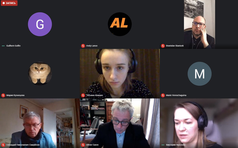 В работе круглого стола приняли участие выпускник Национальной школы администрации, генеральный директор Высшего совета по образованию и стратегическим исследованиям Оливье Карон (Париж, Франция), член Европейского центра парламентских исследований, доктор философии, член Института этики и политики Montalembert Гийом Гольфен (Брюссель, Бельгия). С российской стороны присутствовали: доцент кафедры философии Московского государственного лингвистического университета и Московского автомобильно-дорожного государственного технического университета Геннадий Самуйлов, преподаватели и студенты кафедры французского языка Московского государственного лингвистического университета.