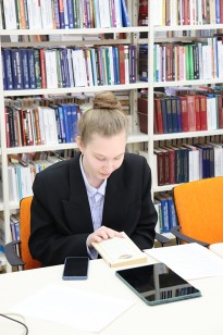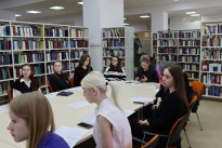 В библиотеке прошло заседание научной секции «Культура международного общения: дипломатический этикет и протокол» в рамках Дней науки, организованных Институтом истории, философии и политических наук Рязанского государственного университета имени С.А. Есенина. В работе секции приняли участие студенты РГУ и представители клуба юных дипломатов «5G» гимназии №5 г. Рязани. Научными руководителями докладчиков выступили преподаватель кафедры иностранных языков ИИФПН Елизавета Андреевна Ревкова и учитель истории и обществознания гимназии №5 Людмила Михайловна Головкина.