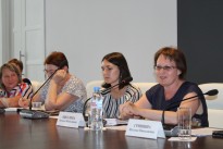 Наши гости из Самарской области поделились опытом работы своих библиотек. Наталья Николаевна Никулина, заместитель директора Самарской областной библиотеки, рассказала о том, как осуществляется работа по модернизации библиотек Самарской области в рамках национального проекта «Культура». Юлия Алексеевна Однодворцева, главный библиотекарь научно-методического отдела Самарской областной библиотеки, представила имиджевые проекты библиотек. Руководитель управления культуры, туризма и молодежной политики муниципального района Сергиевский Ольга Николаевна Николаева говорила о роли модельных библиотек в социокультурном пространстве территории.